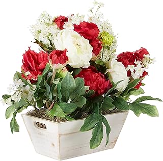 Nearly Natural 1320 Mixed Floral Arrangement with White Wash Planter, Red/White by Nearly Natural [並行輸入品]