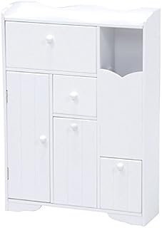 萩原 トイレラック トイレ 収納 棚 【完成品】 カゴ付き ミドル 開き戸 ホワイト MTR-6459 ワイド