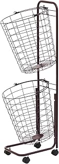 モダンデコ ランドリーバスケット 洗濯カゴ ランドリーラック 2段 キャスター付き ワイヤーバスケット すきま収納 洗濯かご スリム 大容量 (ブラウン)