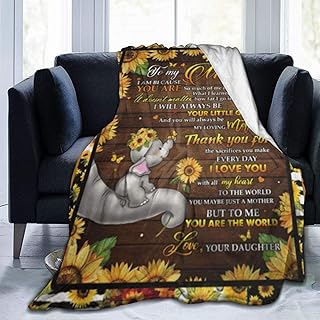 PNNUO フランネルフリースブランケット - My Mom I Love You 象のひまわり 娘から生まれたひまわり クイーンサイズ オールシーズン フラシ天ブランケット 快適で暖かい ソファベッドまたはメンズレディース