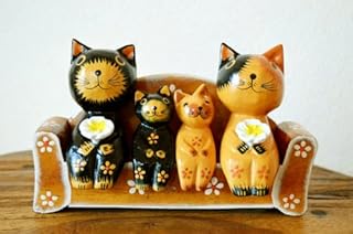アジアン雑貨 バリ雑貨 ネコファミリーソファーセット 置物 オブジェ オーナメント ネコ 木製