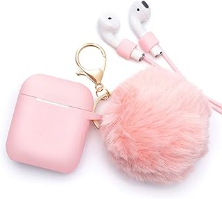 BLUEWIND Airpods Case - BlUEWIND Drop Proof Air Pods Protective Case Cover Silicone Skin for Apple Airpods 2 & 1 Charging Case, Cute Fur Ball Airpod Keychain/Strap, Pink