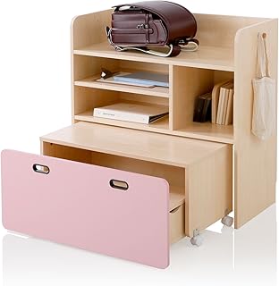 LOWYA ロウヤ 学習机 幅90cm 学習机セット 3点セット 収納付ベンチ キッズ ナチュラル/ピンク