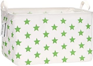 Sea Team 折りたたみ式 長方形 キャンバス生地 収納容器 棚 バスケット オーガナイザー 保育園 子供部屋用 16.5x11x9.8インチ グリーン ST-SB0603STAR-Green