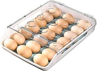 Leyimaoyi 21個 卵ケース 冷蔵庫用 自動落ち式 たまごケース エッグホルダー 冷蔵庫 収納 整理 タマゴケース アウトドア (1個 ブルー)