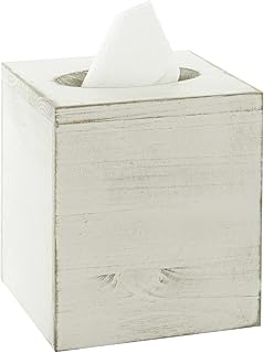 MyGift ヴィンテージホワイトウッドスクエアティッシュボックスカバー
