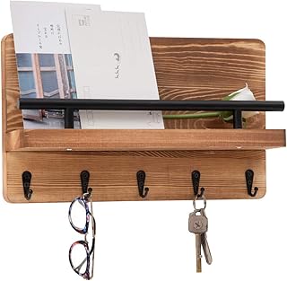 素朴なキーハンガー 壁取り付け 壁用郵便受け 木製キーホルダー 棚付き 木製郵便物オーガナイザー キーフック5個付き 壁掛け式キーハンガー 玄関 廊下 オフィス用