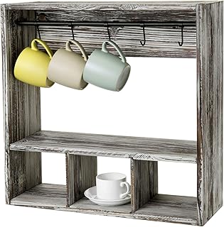 MyGift 素朴なトーチ木製壁取り付けキッチンコーヒーマグカップディスプレイラック&収納棚