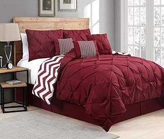 Avondale Manor Ella 無地ピンチプリーツリバーシブル掛け布団スローピロー 寝具セット ツイン ブラッシュ 6点セット ツイン レッド VNC6CSTWINGHRD