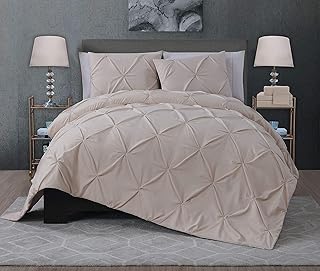 Manor Ridge 酵素洗浄ダイヤモンドボックスキルトカバーセット クイーン アーモンド 3点セット