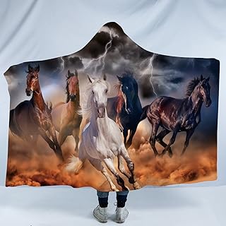 Sleepwish ギャロッピングホース フード付きブランケット ウェスタンカウボーイ シェルパフリーススロー フード付きブランケット 子供 大人用 50"x 60" STR017520