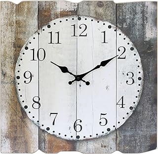 Stonebriar Square 15インチ 素朴な農家風木製アラビア数字壁掛け時計、15.5インチ x 15.5インチ ブラウン