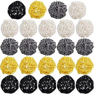 STMK 24個 2インチ ラタンボール デコレーション ウィッカーボール 室内装飾 DIY花瓶ボウルフィラーオーナメント ベビールーム 保育園装飾 ウェディングテーブルデコレーション (ブラック、グレー、イエロー、ホワイト)