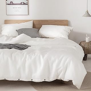 PY HOME & SPORTS フレンチリネン100%布団カバーセット 3点セット キングサイズ ボタン留め 掛け布団カバー1枚 枕カバー2枚 無地 ウルトラソフト (キング、アイボリー)