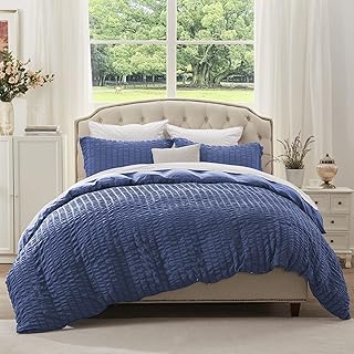 豪華な掛け布団カバー3点セット レディース/ガールズ ウォッシュ加工マイクロファイバー100% ジッパー開閉 ブルークイーン 90x90インチ 掛け布団カバーセット(クイーン掛け布団カバー1枚&枕カバー2枚)