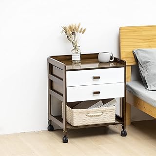 tochean ナイトテーブル サイドテーブル キャスター付き 移動便利 ベッドサイドテーブル 引き出し2つ付き キャビネット ベッド周り収納 ナチュラル素材 天然竹製 飾り台 収納しやすい クルミ色