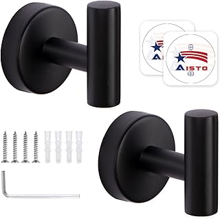 Aisto タオルフック バスルーム用 壁取り付け 2パック モダン マットブラック SUS 304 ステンレススチールハンガー バスタオル 装飾バスローブフック シャワー用