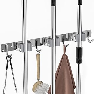 FULGENTE ほうきモップホルダー 壁取り付け ステンレススチール 壁取り付け 収納オーガナイザー 高耐久ツールハンガー ラック1つ フック1つ キッチン バスルーム クローゼット オフィス 庭用