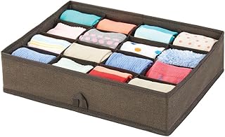 mDesign ソフトファブリックドレッサー引き出しとクローゼットストレージオーガナイザートレイ – ランジェリー、ブラジャー、靴下、レギンス、下着、ジュエリー、スカーフ用16セクション – テクスチャードプリント – エスプレッソブラウン