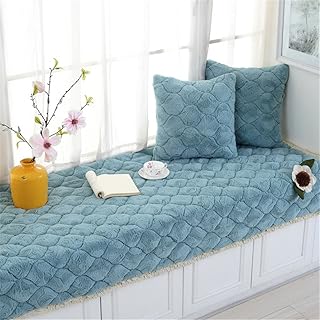 CAMAL ショートプラッシュ厚手ノンスリップベイウィンドウパッド/窓敷居マット/ソファマット/ソファクッション(70x210cm、ブルー)