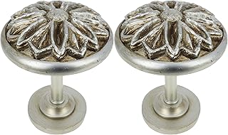 MERIVILLE花びらウィンドウドレープメダリオン留め飾り カーテン留め飾り 壁フック タッセルホルダー 2個セット set of 2 シルバー MHD-PW-10896