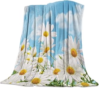 クイーンエリア ソフト コーチブランケット フレッシュホワイト 菊 デイジーフラワー 軽量 快適 ファジーベッド スーパーソフト フラシ天 スローブランケット 39インチx49インチ