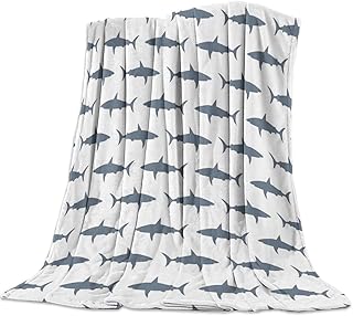 Aomike フランネルフリーススローブランケット カウチ用 - 39インチ x 49インチ シャークシルエットパターンブランケット スーパーソフト 快適 プラッシュマイクロファイバー ふわふわブランケット 軽量 暖かいベッドブランケット