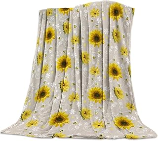 クイーンエリア フリースブランケット スローブランケット ひまわりとハチのプリント ソフトブランケット 暖か 快適 オールシーズン対応 ソファ ベッド ソファ 39インチ x 49インチ