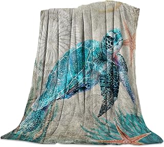 クイーンエリアフリースブランケット スローブランケット ウミガメ 海洋生物 水中ワールド ソフトブランケット 暖かい 心地良い スロー オールシーズン カウチ ベッド ソファー用 39インチ x 49インチ