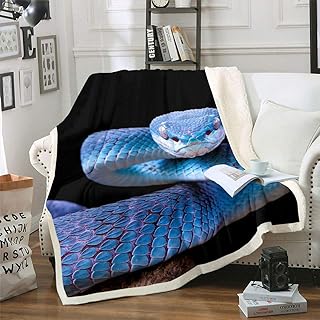 3Dスネーク寝具セット 爬虫類シェルパ フリースブランケット スローブランケット ワイルドブルースネークプリント ソフトブランケット 暖かく快適 プラッシュブランケット 自然動物スローブランケット オールシーズン対応 ベッドソファ ツイン 60インチx80インチ