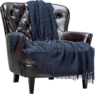 Chanasya ベベル ラウンド テクスチャー スーパーソフト ふわふわ アクリル スローブランケット タッセル付き - 暖かくて快適 軽量 織物 ブランケット ベッド ソファ 椅子 カウチ カバー リビング ベッドルーム (50x65インチ) カーボンブルー