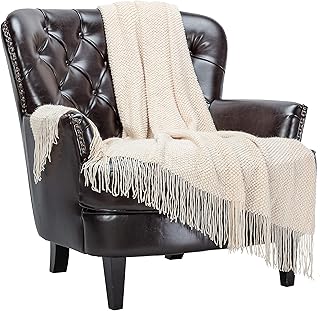 Chanasya ラウンドパールテクスチャー スーパーソフト アクリル スローブランケット タッセル付き - 暖かくて快適 軽量 ふわふわブランケット ベッド ソファ 椅子 カウチカバー リビング 寝室 (50x65インチ) アイボリーブランケット