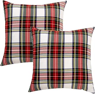 GTEXT 2パック クリスマス装飾 ホワイト 格子柄 枕カバー バッファローチェック スロー枕カバー タータン カウチ ソファ ホームデコレーション コットン 18 x 18インチ