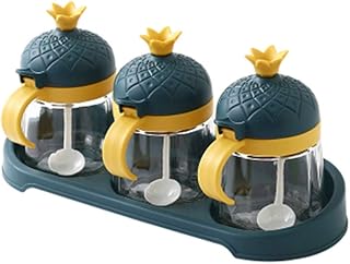 [ユリカー] 調味料ボックス 調味料入れ 3分類 4分類 塩 コショウ 砂糖入れ ガラス 小匙付き 調味料ポット キッチン 小物 パイナップル だいこん 可愛い ボトル セット (パイナップル-3分類)