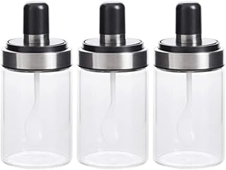 Enjoy Youth 調味料入れ スパイスボトル 調味料ポット 保存びん 小匙付き 塩 コショウ 砂糖入れ 保存容器 ガラス素材 飲食店 家庭キッチン 業務用 北欧風 便利びん 250ml 3個セット