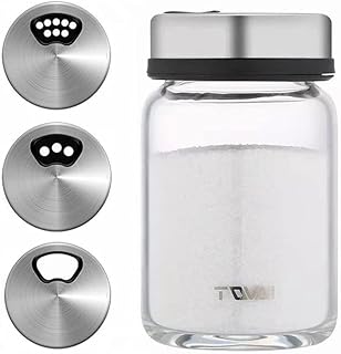 [ディーハウ] 塩・コショウ入れ ステンレス 調味料缶 調味料入れ 塩 コショウ 砂糖入れ おしゃれ 保存容器 調味料ポット キッチン 台所 家庭 キッチン用 アウトドア BBQ 使いやすい 耐熱ガラス (b)