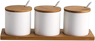 DreamYS 調味料入れ 調味料ポット 調味料ストッカー 木台・匙付き 3個セット 塩 コショウ 砂糖入れ おしゃれ スパイスボトル 香辛料容器 調味料ボトル 保存容器 キッチン用品 (Color 1)