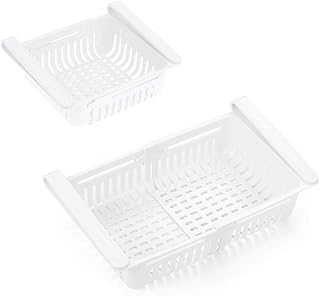 冷蔵庫収納ラック、多機能調整可能な引き出し式スペースレイヤー収納ホルダー冷蔵庫冷凍庫棚ボックス冷蔵庫引き出し(white)