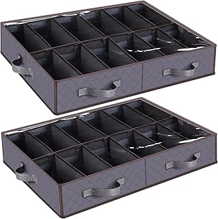 storageLAB Under Bed Shoe Storage Organizer Adjustable Dividers - Set of 2 Fits 24 Pairs Total - Underbed Storage Solution