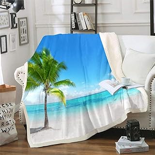 Erosebridal ココナッツパームツリー ファジーブランケット 熱帯の葉 スローブランケット ハワイの風景 ビーチ ブルースカイ ホワイト雲 フラシ天ブランケット ベビーソファベッド用