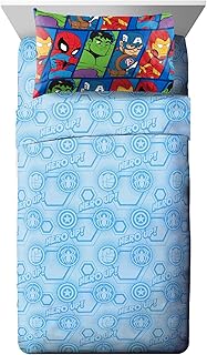Jay Franco マーベル アベンジャーズ ファイティングチーム フルシーツセット – 4点セット スーパーソフトで快適な子供用寝具 – 色あせ防止マイクロファイバーシーツ (公式マーベル製品)