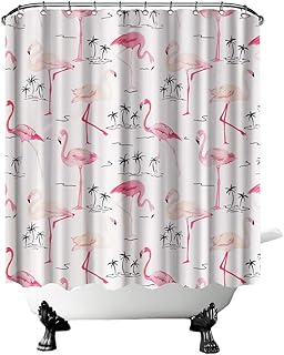 フラミンゴ シャワーカーテン ファブリック ピンク トロピカル 動物 ヤシの木 バスカーテン かわいいカーテン 子供用バスルーム装飾 フック付き 72インチ×72インチ