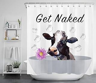 ECOTOB ファームアニマル 牛 シャワーカーテン 装飾 農家 動物 牛 浴槽に紫のデイジー バブルが裸になります シャワーカーテン 72 x 72インチ ポリエステル生地 バスルーム装飾 バスカーテンフック付き