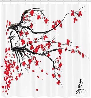 シャワーカーテン メタルフック付き 72インチ x 72インチ 厚手 高耐久 ファブリック バスルーム シャワーカーテンセット フック付き 化学臭なし 防錆 ハトメ穴 モダンホームデコレーション 桜咲く木