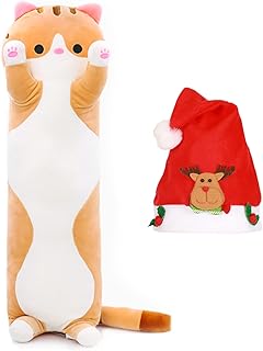 サンタハット付き!ねこ縫い包み 猫抱きまくら 可愛い 添い寝 抱き枕 ネコおもちゃ 柔らかい 多機能 お誕生日 子供 横向き寝 洗える もこもこ 癒し系 デスク/昼寝まくら プレゼント かわいい ふわふわ 特大 ブラウン 90cm